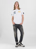 Regular-fit crew-neck T-shirt in piece-dyed pure cotton jersey fabric, the guarantee of softness and durability. This men's short-sleeved T-shirt features patches, raised embroidery and lettering prints on the chest, sleeves and side, and a motorcycle maxi-print on the back. The outer logo label on the sleeve, a hallmark Replay detail, adds the finishing touch.