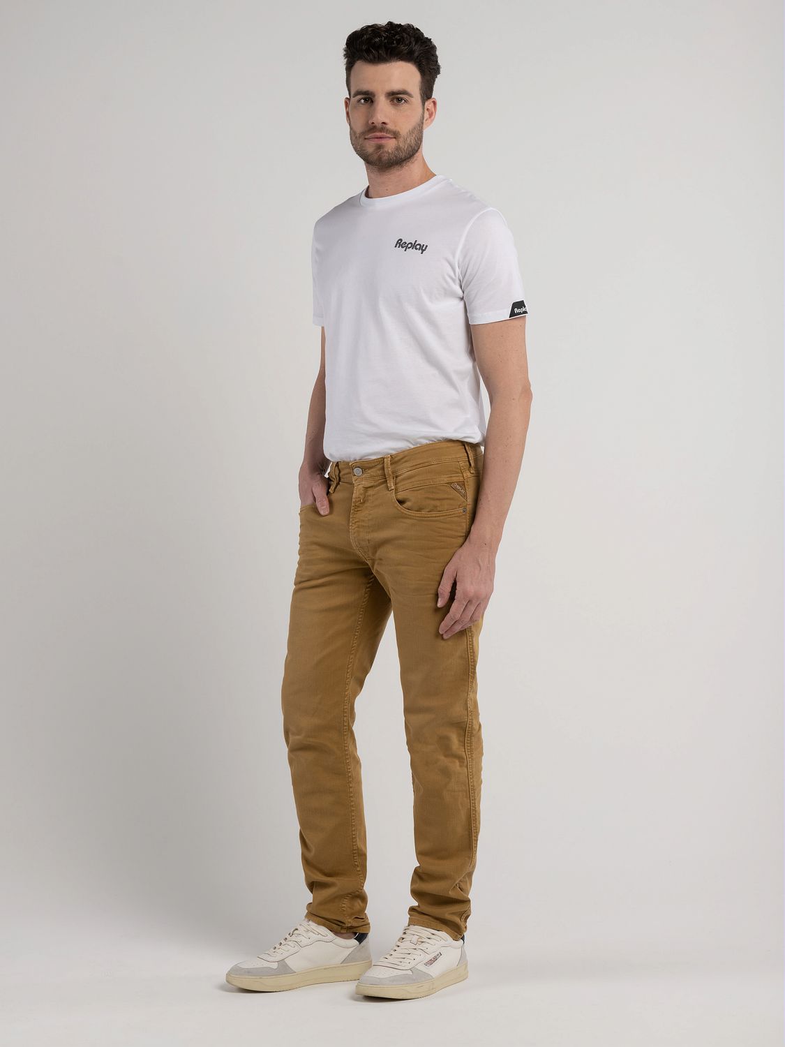 Slim fit jeans with regular waist and tapered leg for a comfort fit. With an authentic look, the garment is made of 9,5 oz garment-dyed stonewashed stretch cotton denim. The five pocket item is characterized by the laser scrapings which creates real use folds. Zip and button fly.