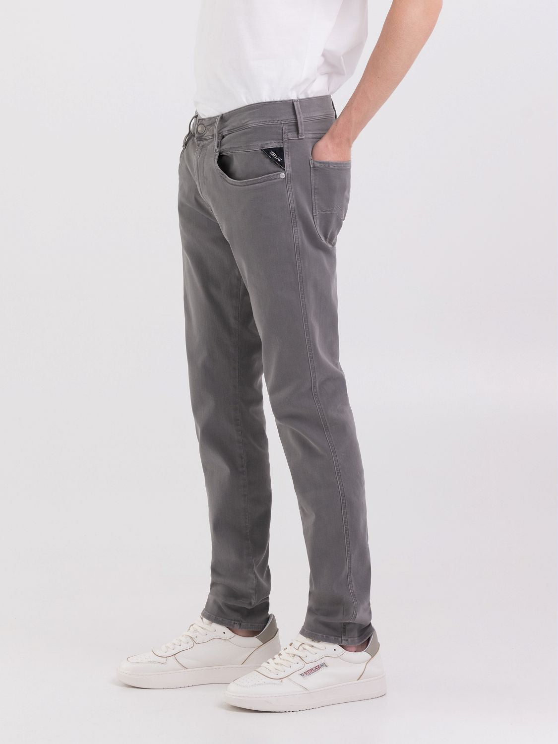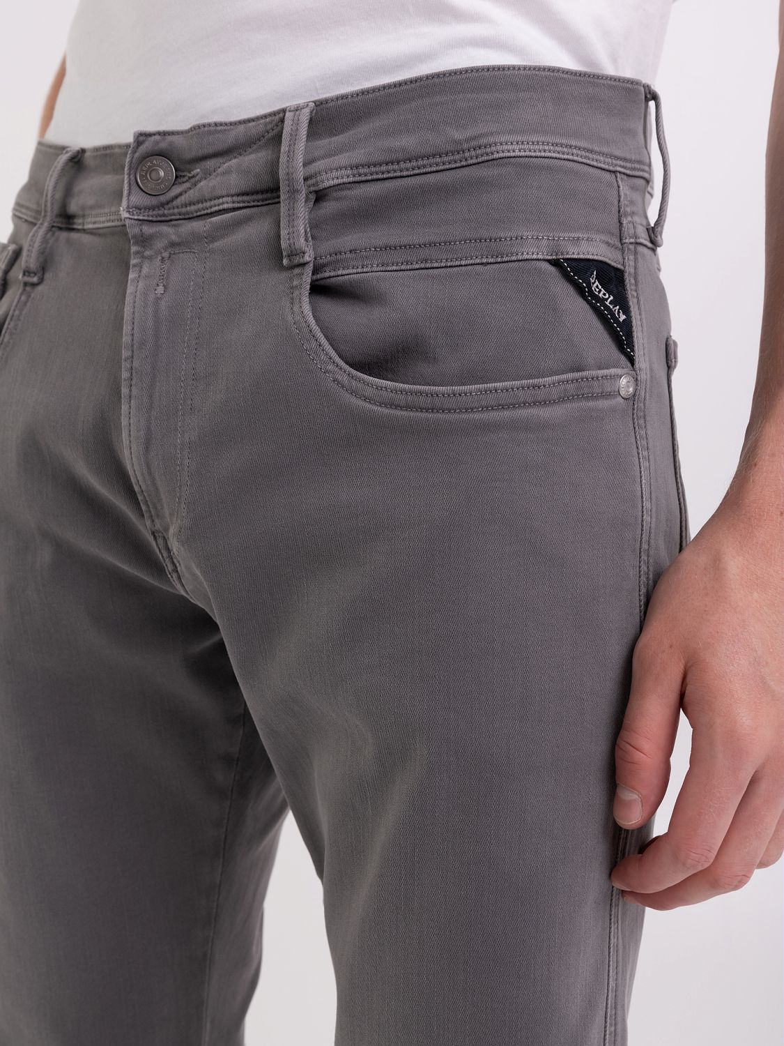 Slim fit jeans with regular waist and tapered leg for a comfort fit. With an authentic look, the garment is made of 10,5 oz garment-dyed extra light Hyperflex stretch cotton denim suitable for all seasons with stone wash. The five pocket item features a zip and button fly.